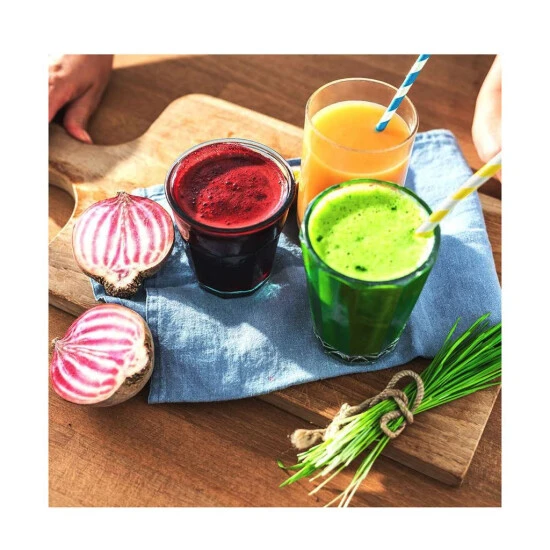 Schonendes Entsaften dank geringer Drehzahl. Für alle Obst- und Gemüsesorten geeignet auch für Beeren, Blattgemüse, Gräser, Wildkräuter und Sprossen.