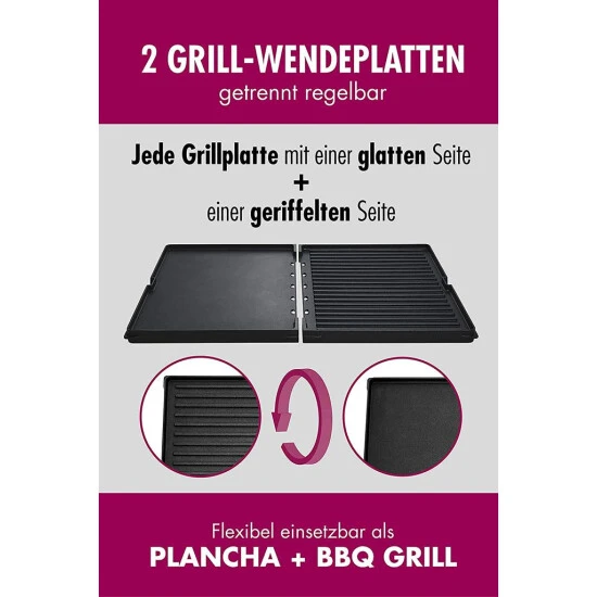 - Zwei getrennt regelbare Grillflächen